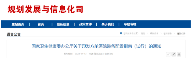 7月13日,國家衛(wèi)生健康委辦公廳發(fā)布《關(guān)于印發(fā)方艙醫(yī)院裝備配置指南(試行)的通知》,明確方艙醫(yī)院裝備配置建議清單(附文末)。清單主要包括基本醫(yī)療裝備及部分必要的非醫(yī)療裝備。其中,醫(yī)療裝備共53種,包括心電監(jiān)護(hù)儀/多參數(shù)監(jiān)護(hù)儀、中心監(jiān)護(hù)系統(tǒng)、心電圖機(jī)、除顫監(jiān)護(hù)儀、輸液泵、注射泵、全自動血液分析儀、特定蛋白分析儀、方艙CT/車載CT等。《通知》指出,各地可在此清單基礎(chǔ)上,結(jié)合自身實(shí)際情況,合理調(diào)整裝備配置品目,并做好相關(guān)醫(yī)用耗材的儲備。方艙醫(yī)院應(yīng)根據(jù)自身功能定位、床位規(guī)模和服務(wù)量,科學(xué)確定裝備品目和數(shù)量,原則上應(yīng)充分依托托管醫(yī)院開展檢查檢驗(yàn)工作。方艙醫(yī)院確有檢查檢驗(yàn)需求的,可結(jié)合實(shí)際需求配置相關(guān)裝備,確保裝備適宜、運(yùn)行安全、使用方便、經(jīng)濟(jì)合理。方艙醫(yī)院應(yīng)按照當(dāng)?shù)匾螅⒔∪b備調(diào)配管理使用制度。方艙醫(yī)院運(yùn)行過程中,應(yīng)做好裝備日常巡檢和維護(hù);休艙后,做好收儲調(diào)配,避免資源浪費(fèi)。裝備供應(yīng)商應(yīng)具備足夠的生產(chǎn)交付能力和當(dāng)?shù)貛齑姹U希峁┙桓稌r(shí)間承諾;應(yīng)提供與方艙建設(shè)相匹配的交付安裝方案。明確安裝所需的時(shí)間、人力、物流、安全保障等,安裝方案流程要完整、有記錄、可驗(yàn)收;應(yīng)提供當(dāng)?shù)刈懔康陌惭b售后人員名單和證明材料,證明安裝培訓(xùn)能力;應(yīng)具備方艙醫(yī)院啟用后進(jìn)入方艙服務(wù)和培訓(xùn)的能力,具備完善的EHS(環(huán)境Environment、健康Health、安全Safety)防護(hù)管理體系。今年5月,《求是》雜志刊發(fā)國家衛(wèi)生健康委黨組書記、主任馬曉偉的一篇署名文章,文章提出,要提前規(guī)劃準(zhǔn)備定點(diǎn)醫(yī)院和亞定點(diǎn)醫(yī)院、永久性方艙醫(yī)院、集中隔離點(diǎn),把防控的人力物質(zhì)資源備足備齊,確保一旦發(fā)生疫情迅速啟用。文章發(fā)布當(dāng)天,江西省衛(wèi)健委主任王水平稱,將按照“1+11”的原則,大力推進(jìn)省級和11個(gè)設(shè)區(qū)市“永久性方艙醫(yī)院”建設(shè)。三天后,河南省商丘宣布擬耗資1.35億元新建設(shè)永久性方艙醫(yī)院。“方艙醫(yī)院”常指臨時(shí)搭建、便于移動的醫(yī)院,是一種模塊化的衛(wèi)生裝備,具有機(jī)動性強(qiáng)、建造速度快、造價(jià)低等諸多優(yōu)點(diǎn),可以適應(yīng)各種突發(fā)的應(yīng)急救援任務(wù)。據(jù)國新辦新聞發(fā)布會公布,截至4月25日,全國已建成和正在建設(shè)的方艙醫(yī)院近400家,床位總數(shù)約56萬余張。而在3月22日,全國已經(jīng)建成或正在建設(shè)的方艙醫(yī)院還僅有33家,床位總計(jì)3.5萬張。今年3月,國務(wù)院聯(lián)防聯(lián)控機(jī)制綜合組印發(fā)了《方艙醫(yī)院設(shè)置管理規(guī)范》。根據(jù)文件內(nèi)容,每個(gè)方艙醫(yī)院應(yīng)滿足200至3000張床位的規(guī)模,每床位凈使用面積不少于6平方米/床,每20張床作為一個(gè)單元設(shè)置必要的隔斷設(shè)施,每100張床位配備5-10個(gè)衛(wèi)生間廁位。國家衛(wèi)生健康委醫(yī)政醫(yī)管局相關(guān)負(fù)責(zé)人指出,方艙醫(yī)院不僅是應(yīng)對新冠肺炎,在應(yīng)對傳染性疾病以及其他的大規(guī)模突發(fā)公共衛(wèi)生事件都起到非常重要的作用。這些設(shè)施在平時(shí)依然可以發(fā)揮原有作用,一旦有需要,也能在很短時(shí)間內(nèi)轉(zhuǎn)換成方艙醫(yī)院使用。在常態(tài)化疫情防控形勢下,準(zhǔn)備一定數(shù)量的方艙醫(yī)院,一方面可以最短時(shí)間內(nèi)迅速擴(kuò)充救治床位,減少占用正常醫(yī)療資源。而且能夠在很短時(shí)間內(nèi)做到“床等人”,做到應(yīng)收盡收、應(yīng)治盡治。方艙醫(yī)院建設(shè)過程中涉及到的醫(yī)療設(shè)備采購需求,正在持續(xù)釋放。中國政府采購網(wǎng)顯示,僅6月以來,已有石嘴山市方艙醫(yī)院設(shè)施設(shè)備采購、新龍縣衛(wèi)生健康局2022年方艙醫(yī)院物資緊急采購、萍鄉(xiāng)市新冠肺炎方艙醫(yī)院放射類設(shè)備采購、爐霍縣衛(wèi)生健康局方艙醫(yī)院儲備物資及救護(hù)車緊急采購、固原市方艙醫(yī)院建設(shè)項(xiàng)目所需醫(yī)療設(shè)備政府采購等諸多項(xiàng)目公布成交結(jié)果。可以看出,市縣方艙醫(yī)院建設(shè)還在繼續(xù)。近期,多個(gè)項(xiàng)目即將開標(biāo):宜賓市第一人民醫(yī)院方艙醫(yī)院改建醫(yī)療救治設(shè)備物資比選項(xiàng)目,總預(yù)算約為人民幣1911萬元,其中第一包(醫(yī)療設(shè)備)比選預(yù)算約為人民幣1130萬元,將于7月15日開標(biāo)。麗江市新冠肺炎方艙醫(yī)院改造建設(shè)項(xiàng)目(醫(yī)療設(shè)備)項(xiàng)目,預(yù)算金額為689萬元,將于7月27日開標(biāo)。萍鄉(xiāng)市新冠肺炎方艙醫(yī)院檢驗(yàn)、超聲、監(jiān)護(hù)、呼吸機(jī)、消毒類設(shè)備采購項(xiàng)目(第二次),預(yù)算金額855萬元,將于7月22日開標(biāo)。巴彥淖爾市臨河區(qū)衛(wèi)生健康委員會方艙醫(yī)院醫(yī)療設(shè)備采購,預(yù)算金額約
