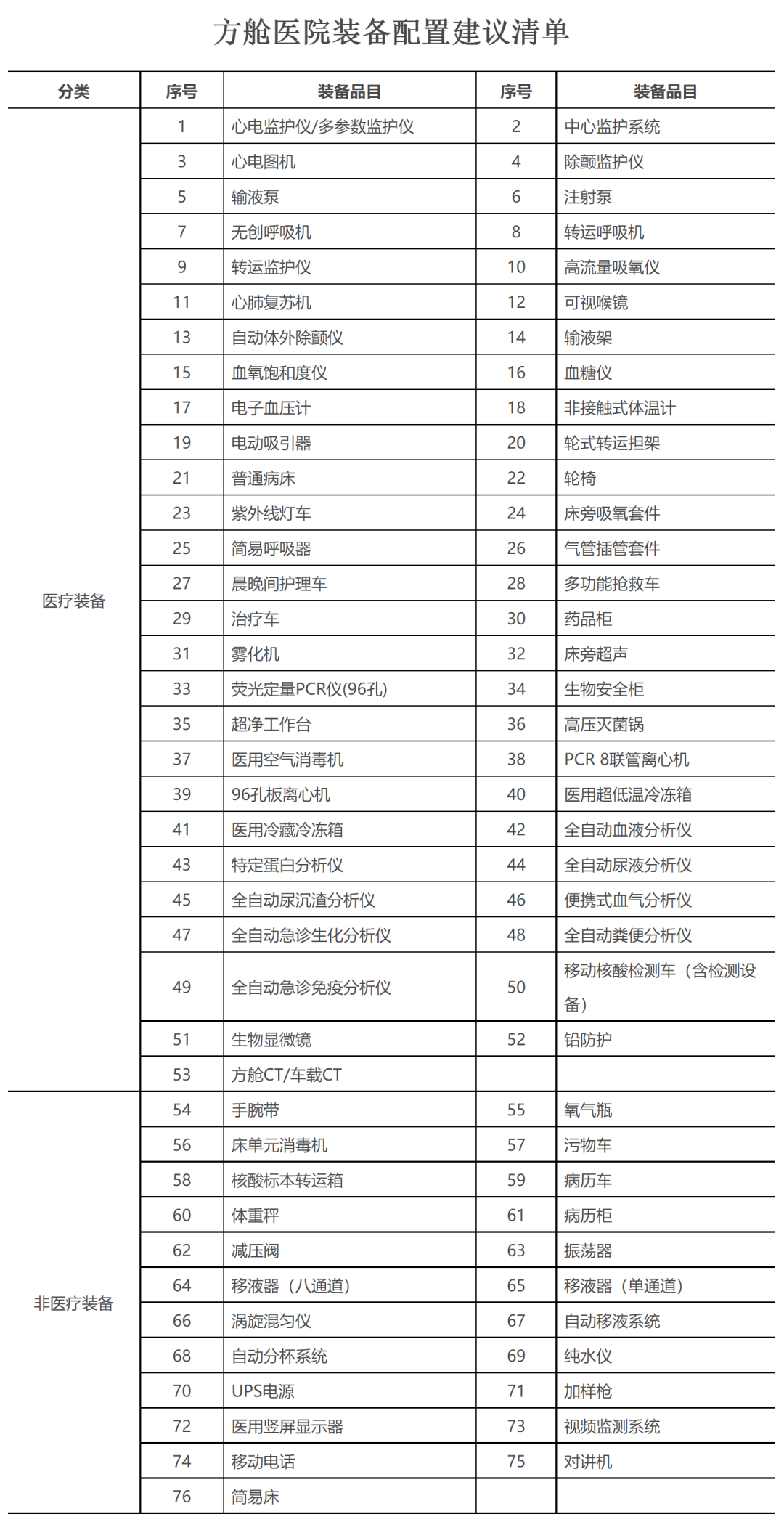 裝備配置標(biāo)準(zhǔn)下發(fā),含53種醫(yī)療設(shè)備