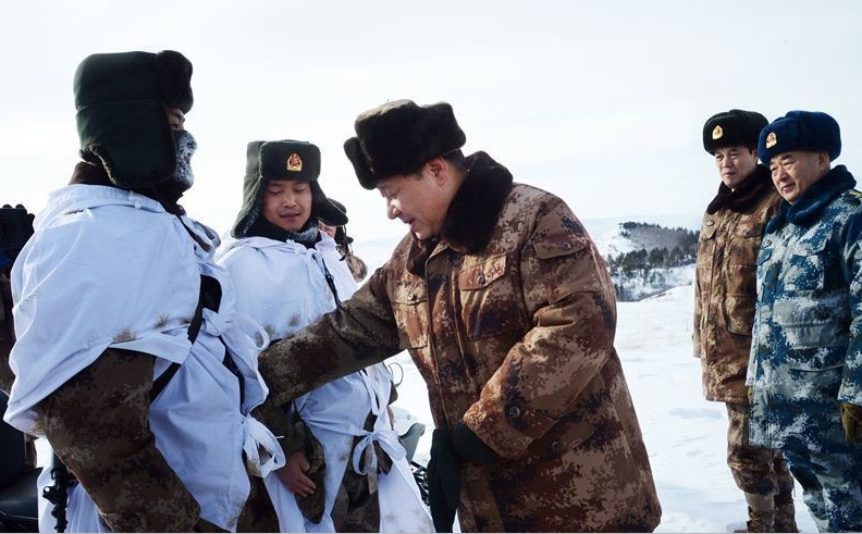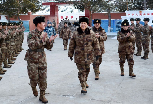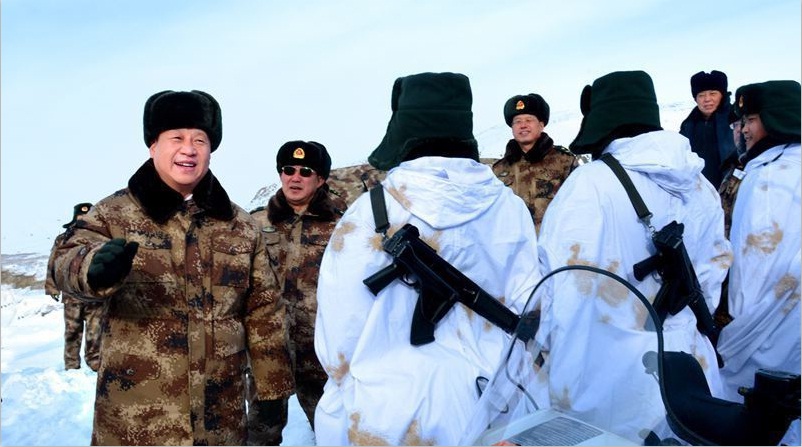 2014年1月26日,習近平主席冒嚴寒踏冰雪,專程來到邊防某部,親切看望慰問戍邊官兵,代表黨中央、國務院、中央軍委,向在祖國邊防堅守戰斗崗位的全體指戰員致以誠摯問候。